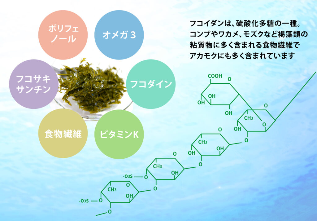 アカモクの最大の特徴は、独特のネバネバ成分です。このネバネバの正体が「フコイダン」や「アルギン酸」といった機能性成分(粘質多糖類)なのです。